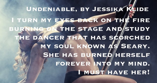 The crowd goes silent instantly as the THUMP, THUMP, THUMP, and strobes take over. Anticipation is heavy in the air. The tension is thick as the excitement builds, then the plucked notes of an electric guitar fill the room, and I recognize “So Contagious” by Acceptance. Hmm. Interesting choice.Kip leans over and shouts. “This is going to be good.”But I don’t hear him. The circling spotlight found it’s target when the curtain was pulled back and a Goddess dances onto the stage. I know without a doubt, this is Seary! Staring at her, spellbound by her beauty, my mind goes blank and the words of the song think for me. Wow! This is unexpected! My cock fills with blood. One hand instinctively seizes it, trying to choke the life out of it, while the other hunkers down on my drink and I struggle to get a grip on myself. She boldly bounces onto the stage to perform for a crowd of drunken fools, but her graceful movement belies her occupation and I recognize a gifted and talented dancer before me. She moves with the elegance and poise of someone who could, and probably should, be dancing on a larger, grander scale. She is perfection in motion.